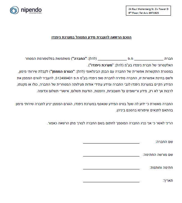 פנו לשירות הלקוחות שלנו במייל- SUPPORT@NIPENDO.COM לקבלת ההסכם לחתימה