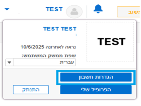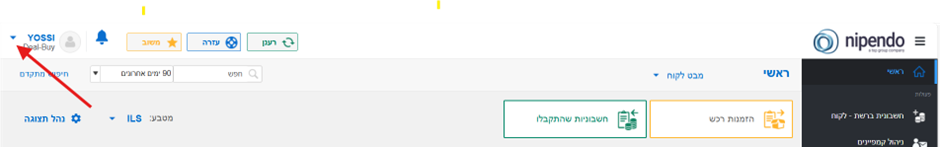 במסך הראשי, בצידו השמאלי של המסך, תראו חץ קטן ליד שם החברה שלכם.