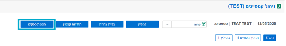 ההזמנה מתבצעת דרך ממשק "ניהול קמפיינים", וניתן להוסיף ספקים אחד-אחד או בקבוצות.