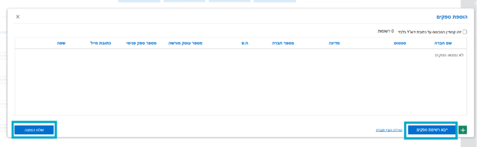 לחצו על כפתור "ייבוא רשימת ספקים"