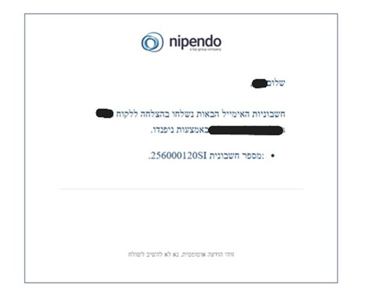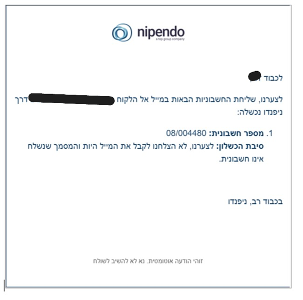 לאחר שליחת החשבונית, הספק יקבל מייל עם סטטוס השליחה: