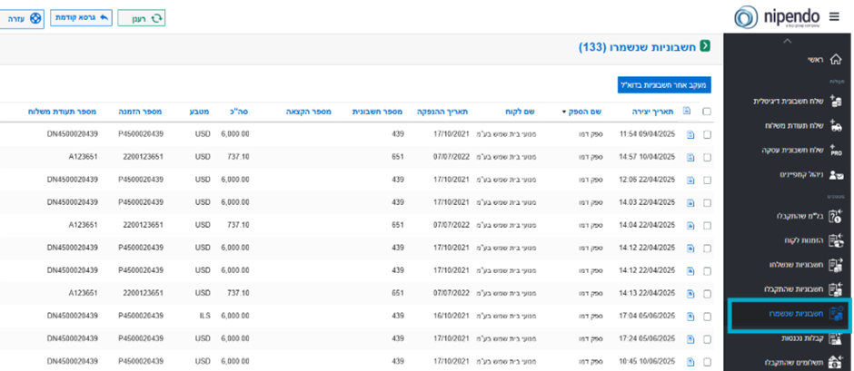 עברו לתפריט הראשי ובחרו בלשונית "חשבוניות שנשמרו".