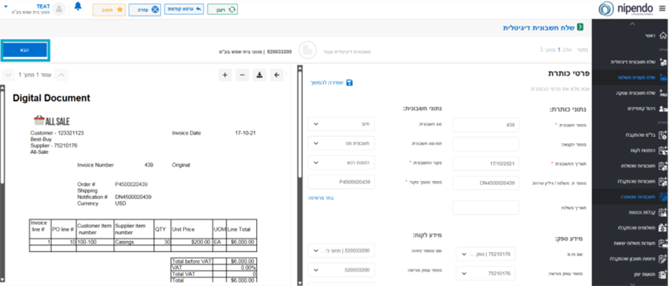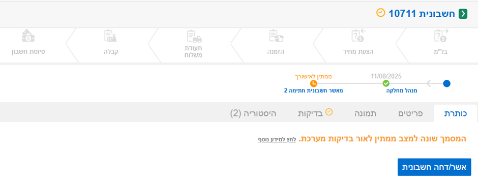 שלב 6: אישור או דחייה של חשבוניות במערכת