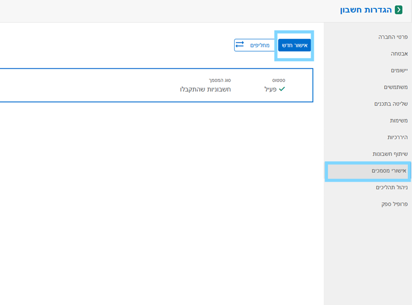 4. לחצו על הכפתור הכחול "אישור חדש"