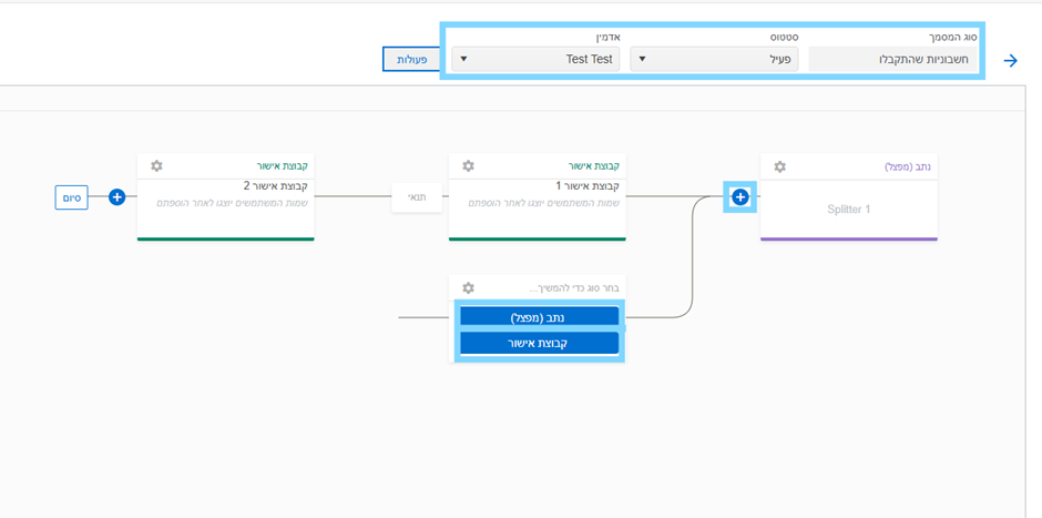 לאחר כל שלב, יופיע כפתור "+" להוספת שלב נוסף.