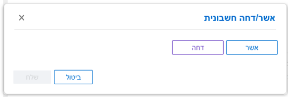 • הגורם המאשר יוכל לבחור לאשר או לדחות את החשבונית.