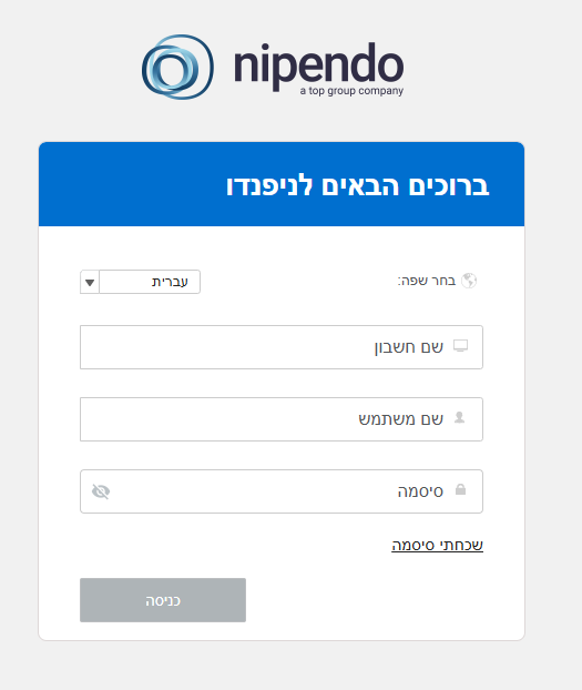 1. היכנסו למערכת Nipendo באמצעות שם משתמש וסיסמא במסך ה-LOGIN
