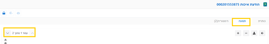 כאשר יש ריבוי מספרים סידוריים בהודעת האיכות בלשונית "תמונה" יופיעו שני עמודים