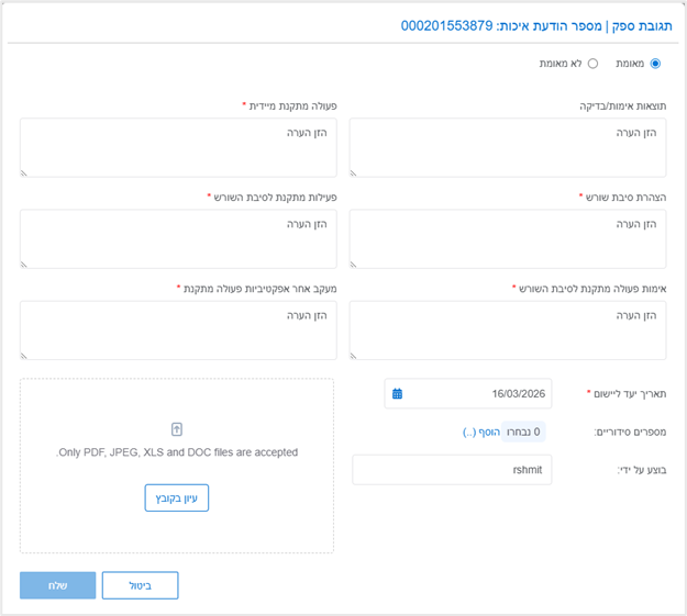 הוספת תגובה להודעת איכות