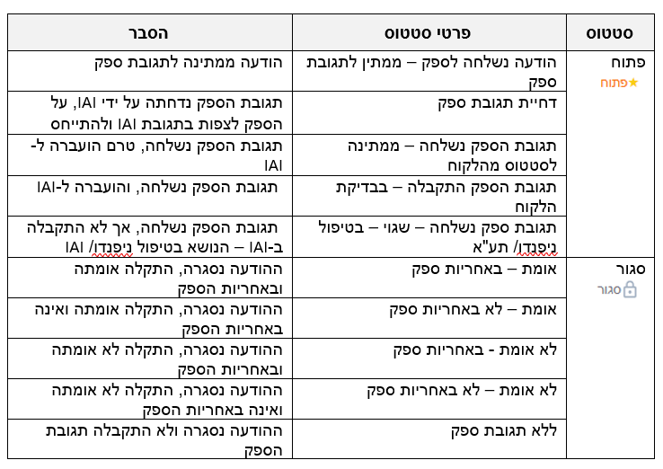 4. הודעת איכות נסגרה על ידי IAI