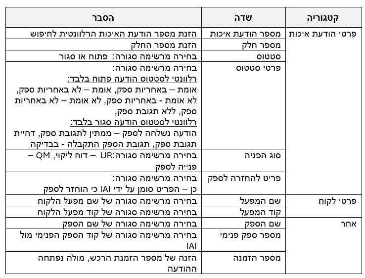 2. הודעת איכות עודכנה על ידי IAI